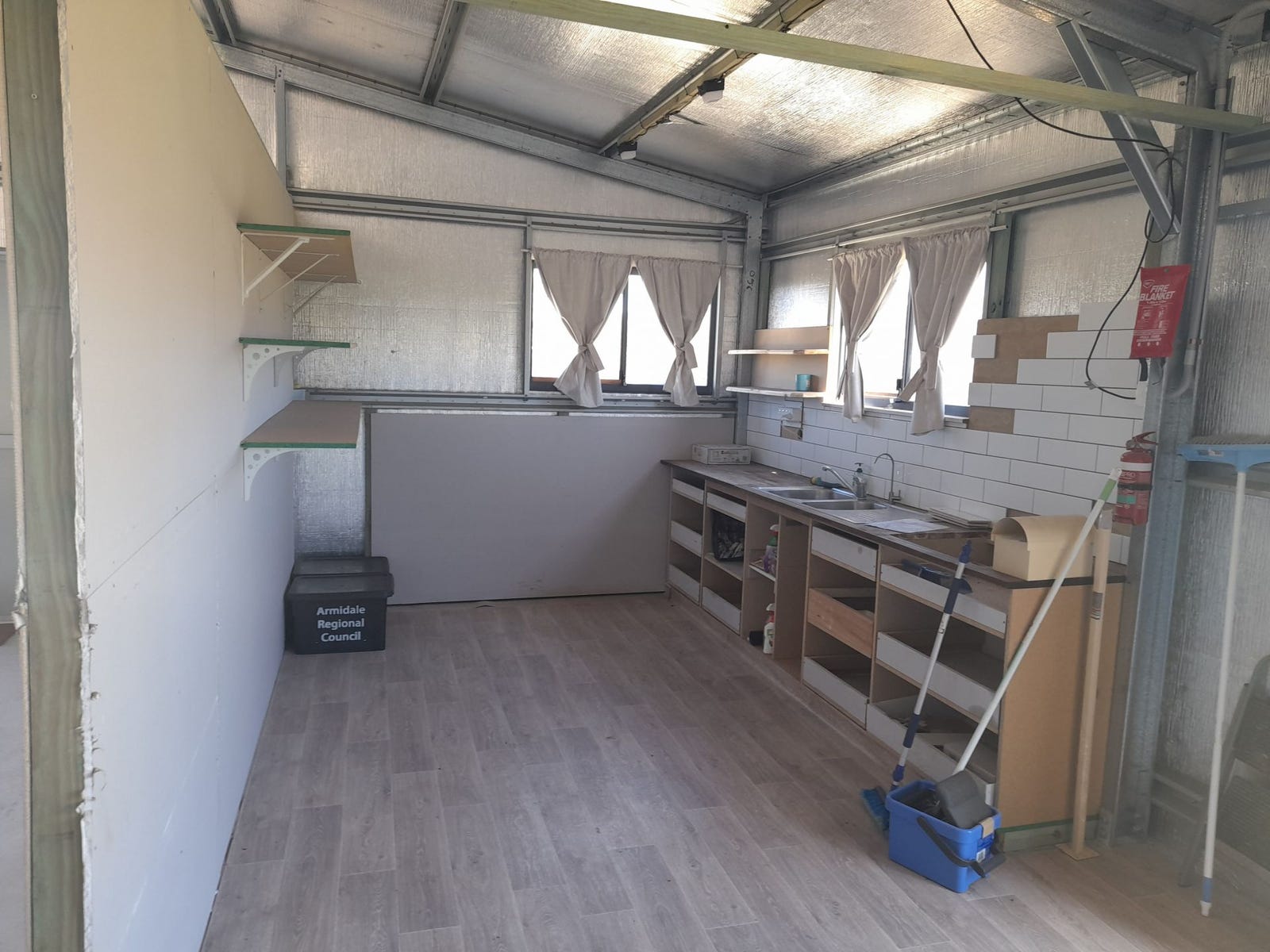 * Freestanding insulated cabin plus camp kitchen (inside shed)