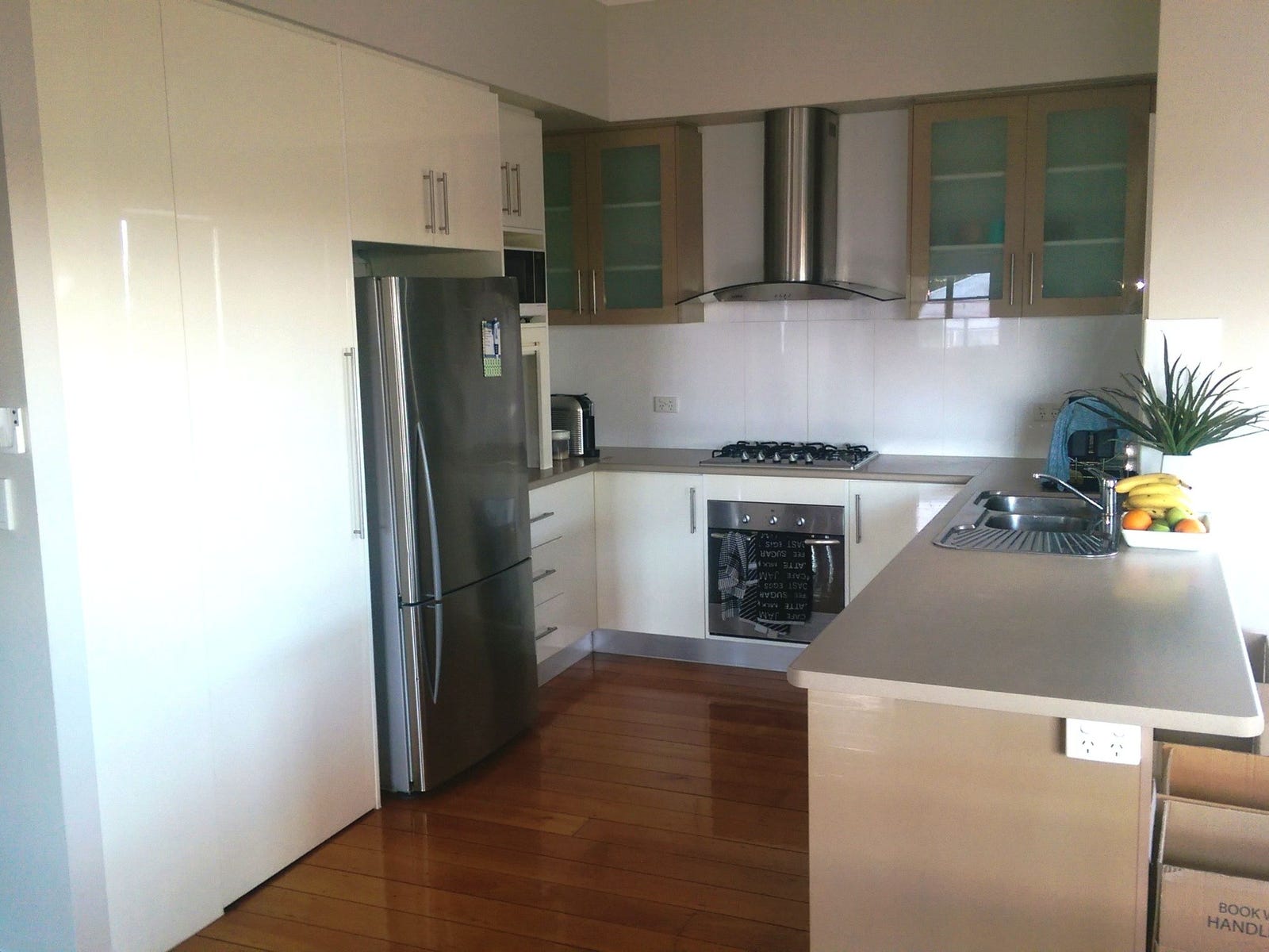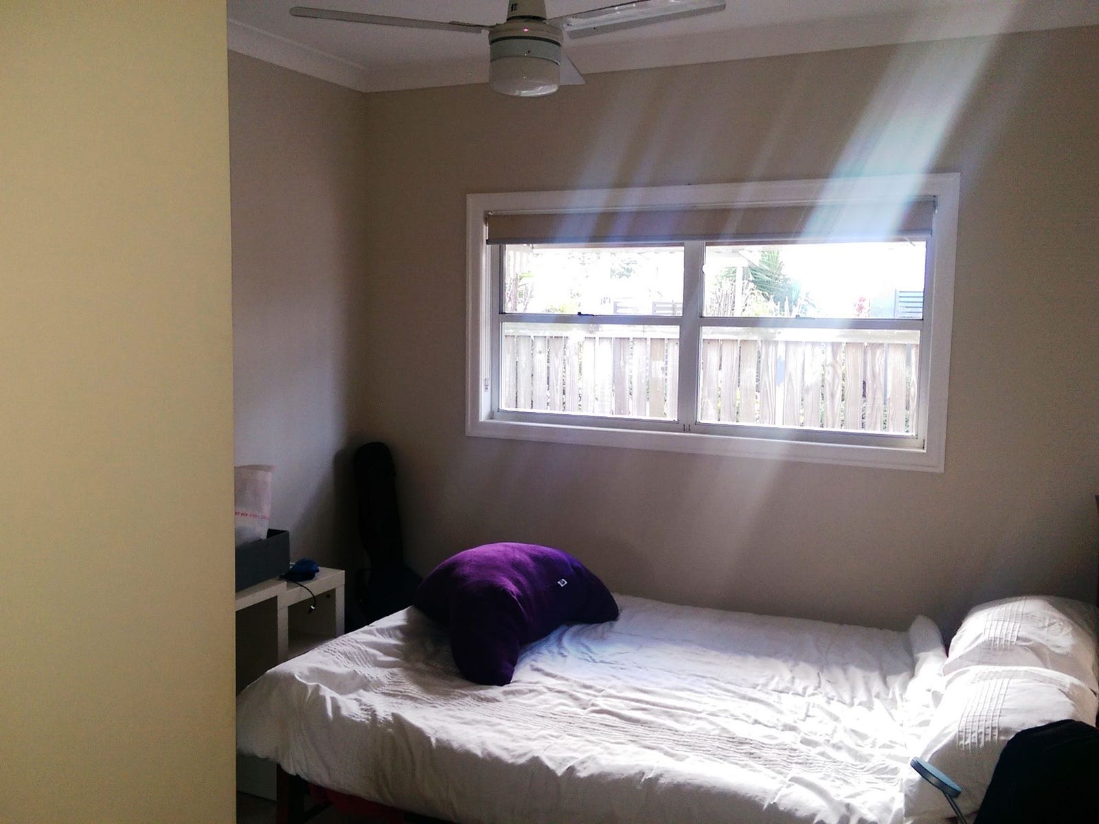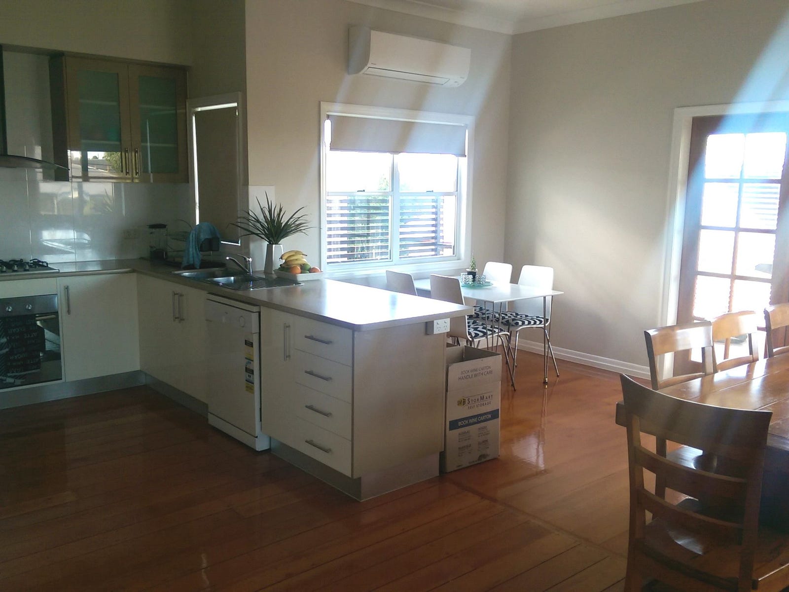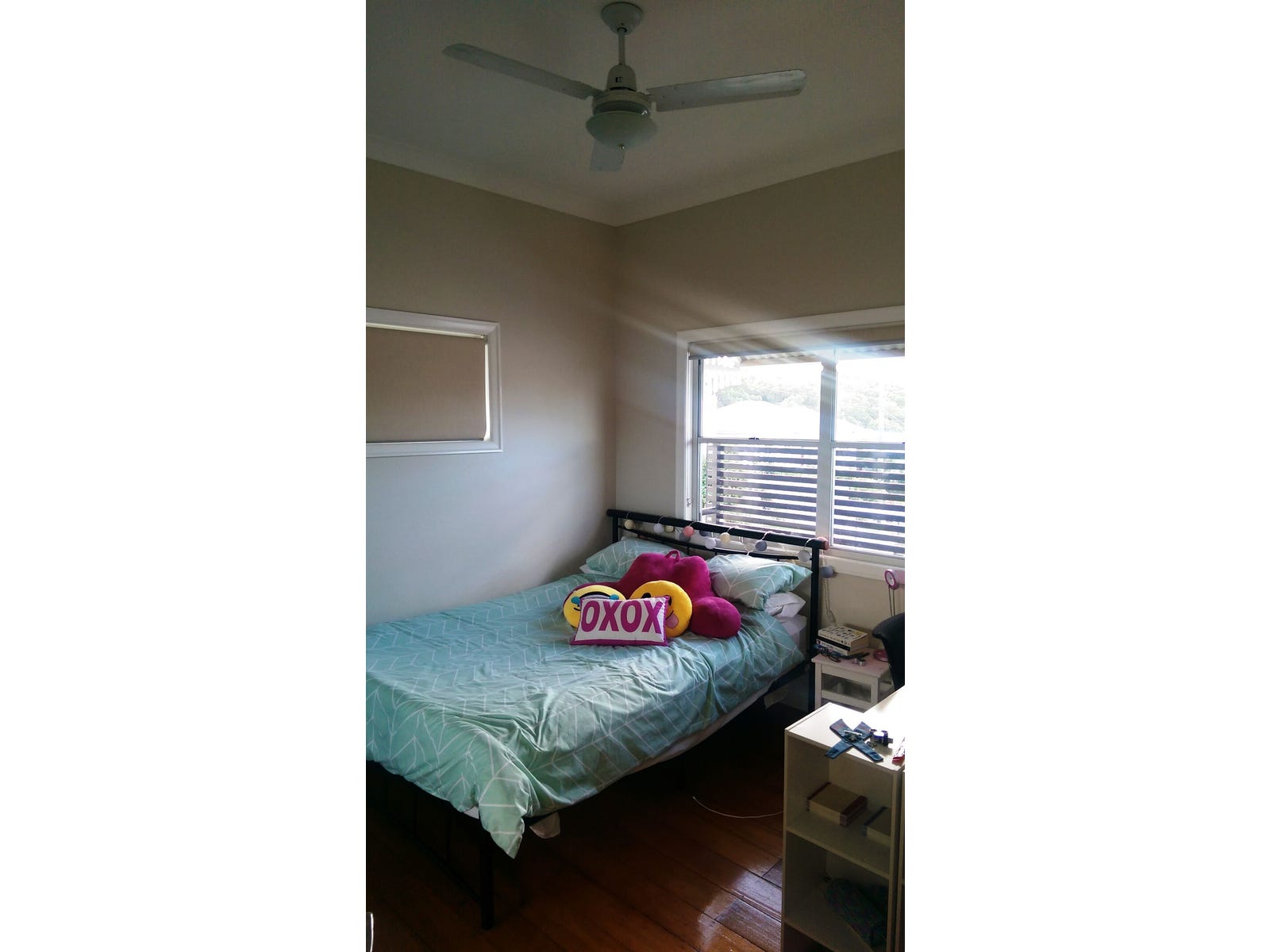 Upstairs: Main Bedroom with Ensuite, Walk-in Robe, air-con; 2nd Bedroom with built-in robe, fan; Bathroom with shower; Kitchen with pantry; Dining area; separate Sitting room if req'd; outdoor Deck with views.